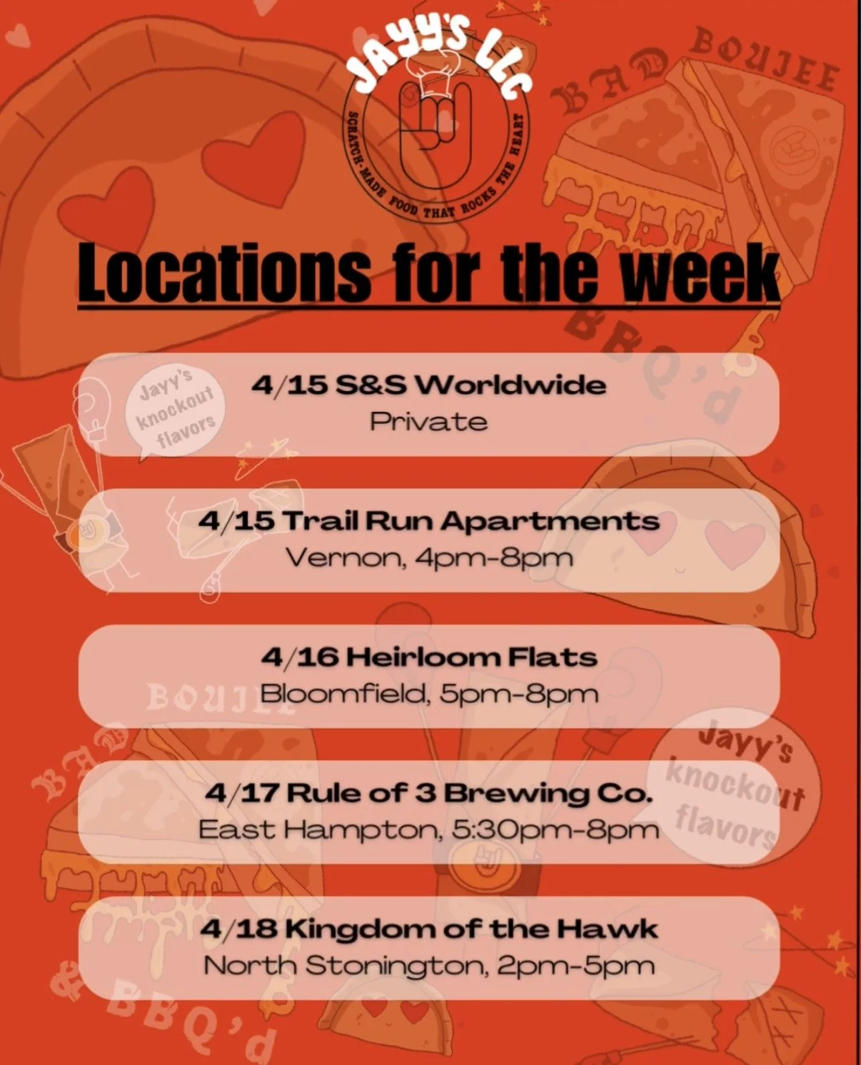 Welcome to Jayy’s! Locations & specials of the week: See Full Calendar Special#1: Street Corn Tacos Special #2: Mushroom Swiss Sliders View Menu